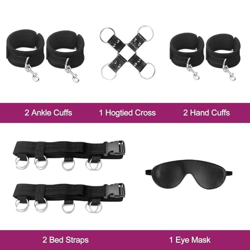 Bed Bondage Restraints Kit Sex Toys,BDSM Sex Handcuffs Bed Restraint Straps for Couples, Under Bed Sex Bondage Romance Straps for Couple,Adult Toys Set with Adjustable 2X2 Wrists Ankle Cuff