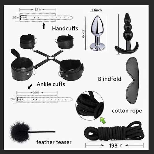 Explore Pleasure 26pc Restraints Set. Perfect for Beginners, SM Games, Safe Exploration Includes Restraints, Cuffs, Nipple Clamps, Flogger, Ball Gag, Blindfold, Rope, Whips, Plugs, Handcuffs etc