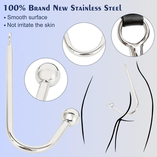 Anal Hook BDSM Sex Bondage - Bed Restraint Kit with Adjustable Handcuffs Collar Ankle Cuffs Leather Furniture Restraint Set with Anal Ball | Adult Sex Toys for Couple Foreplay