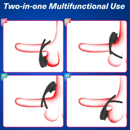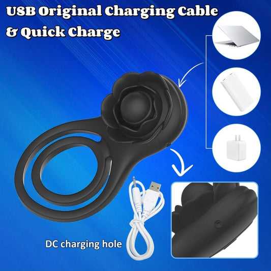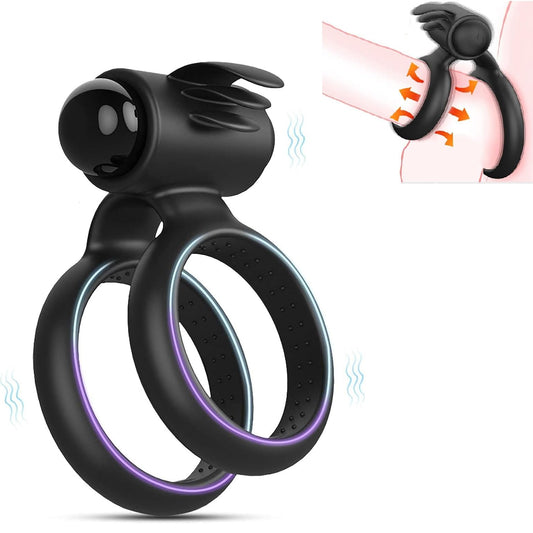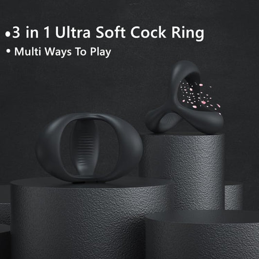 Maries Vibrating Triple Cock Ring, Stretchy Penis Ring Couple Vibrator with 9 Vibration Modes Sleeve Extender, Rechargeable Waterproof Adult Sex Toys for Men Couples, black