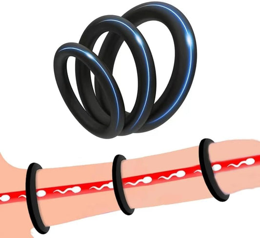 Black 3 Pieces Silicone Soft Delay Classic Watertight Extension Restraints rings Band Kit Rings for Men Extension Ring Band Kit